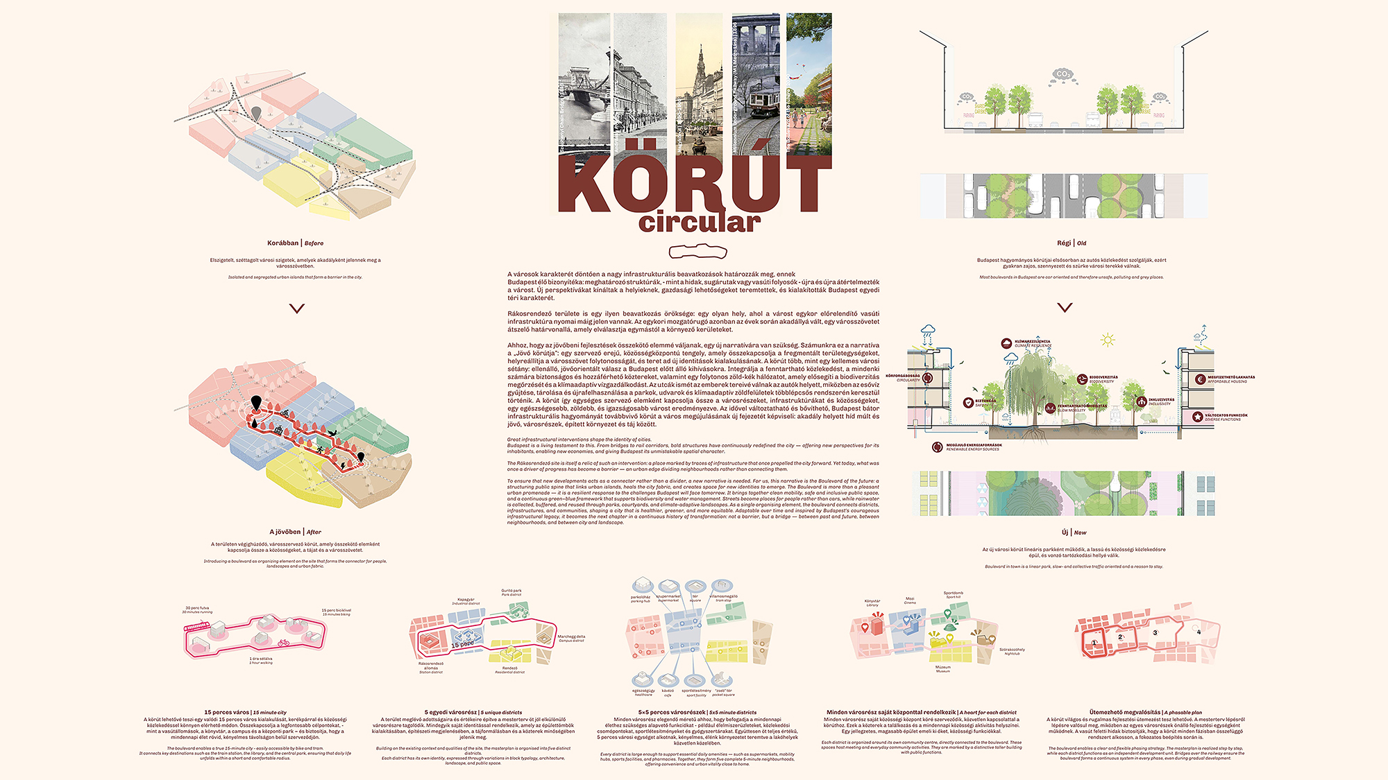 The Masterplan proposal is built on a strong and distinctive urban design concept, centered around a new boulevard that connects the entire area. This boulevard acts not only as a structural and mobility framework, but also as a key reference to Budapest's identity.