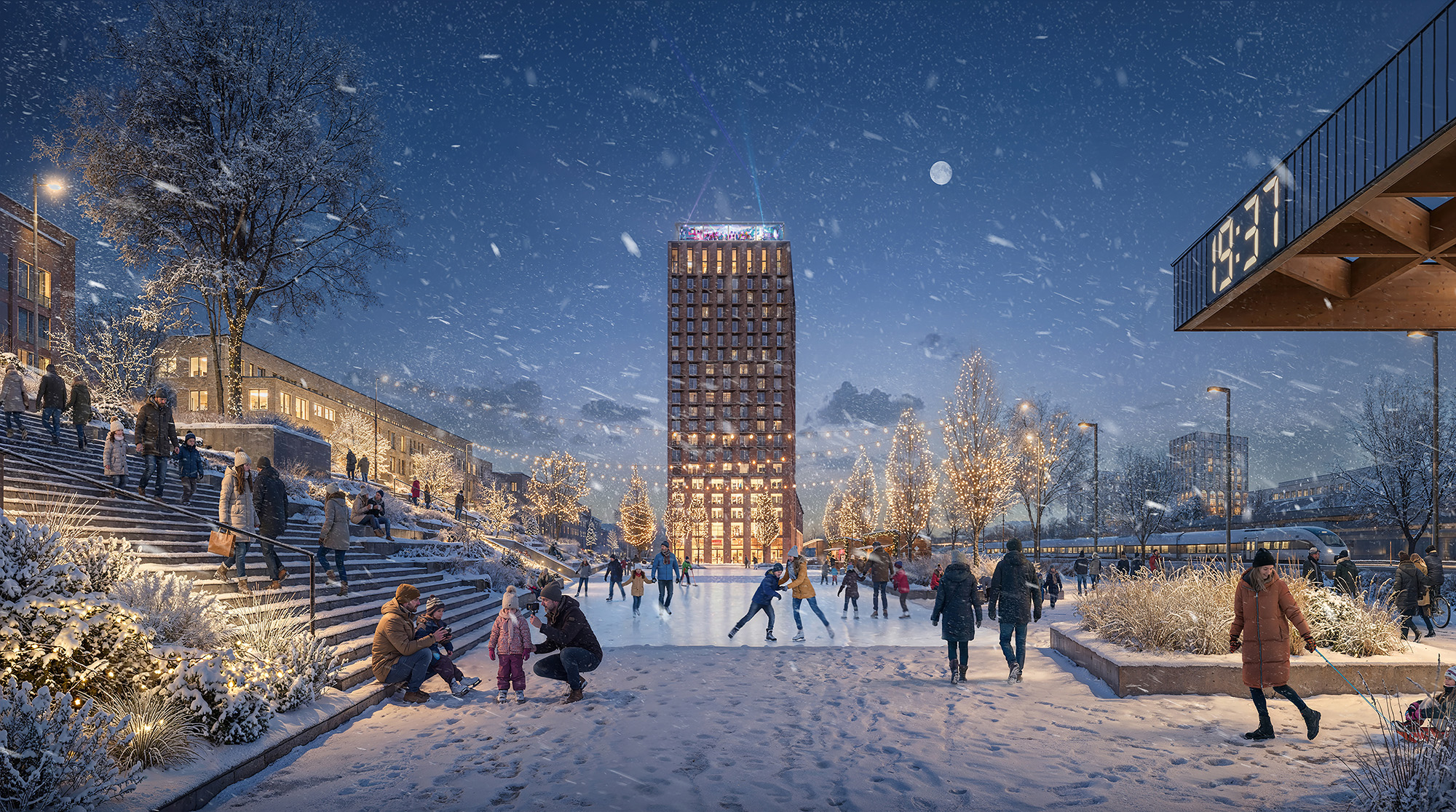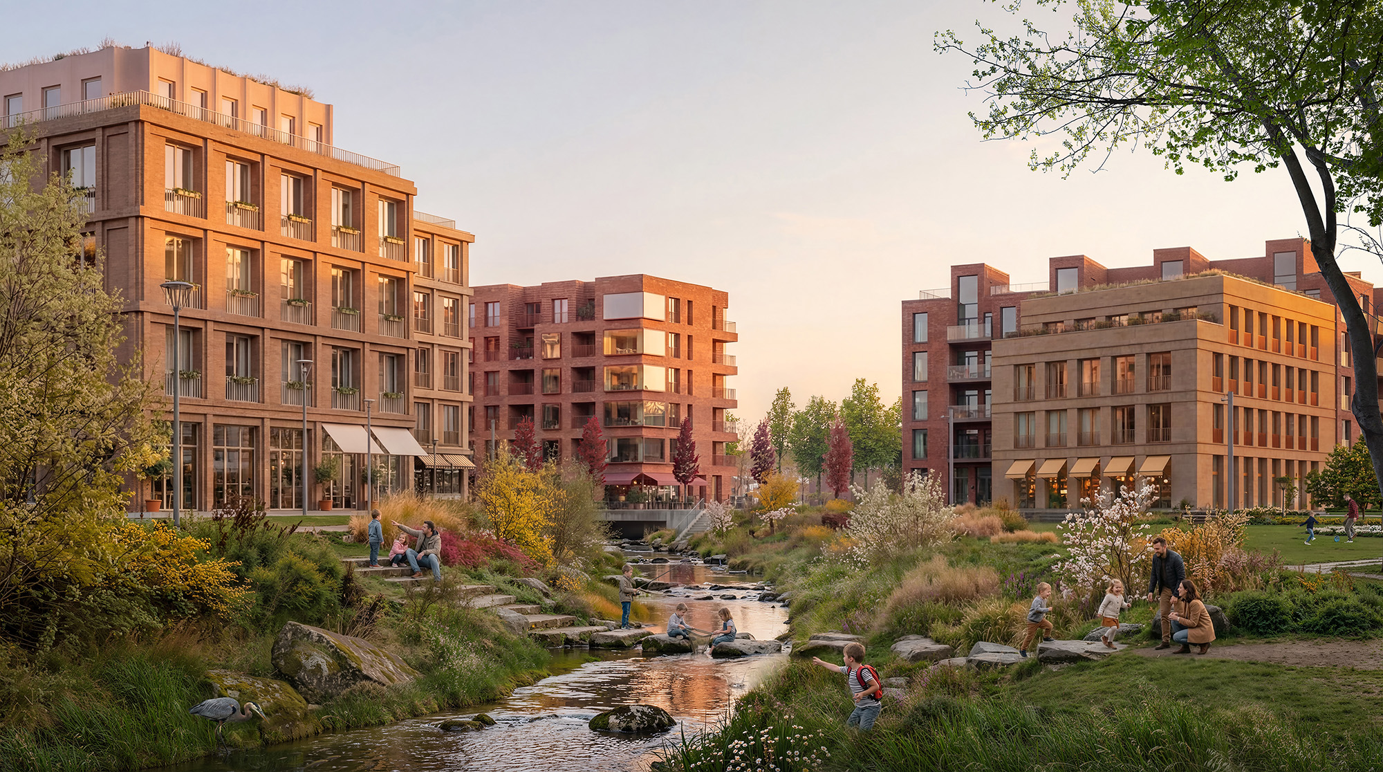 The plan brings together five districts with distinct characters into a coherent whole, responding to diverse social, functional and phasing needs. A rich mix of services and institutions – including a district library – creates a strong central hub and lays the foundation for a vibrant neighbourhood.